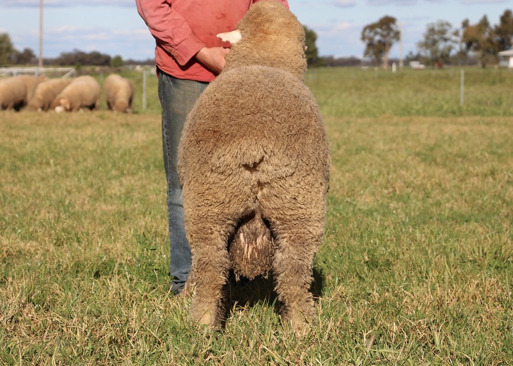 Stud Masters Comment: A well-structured sire that is big and athletic supporting a level topline. He is ET bred out of one our best performing dams who consistently produces top end progeny. 230024 carries a quality wool with lock, thickness and staple length. His asbv’s match his physical attributes with a yearling weight in the top 20% of industry and positive eye muscle depth.